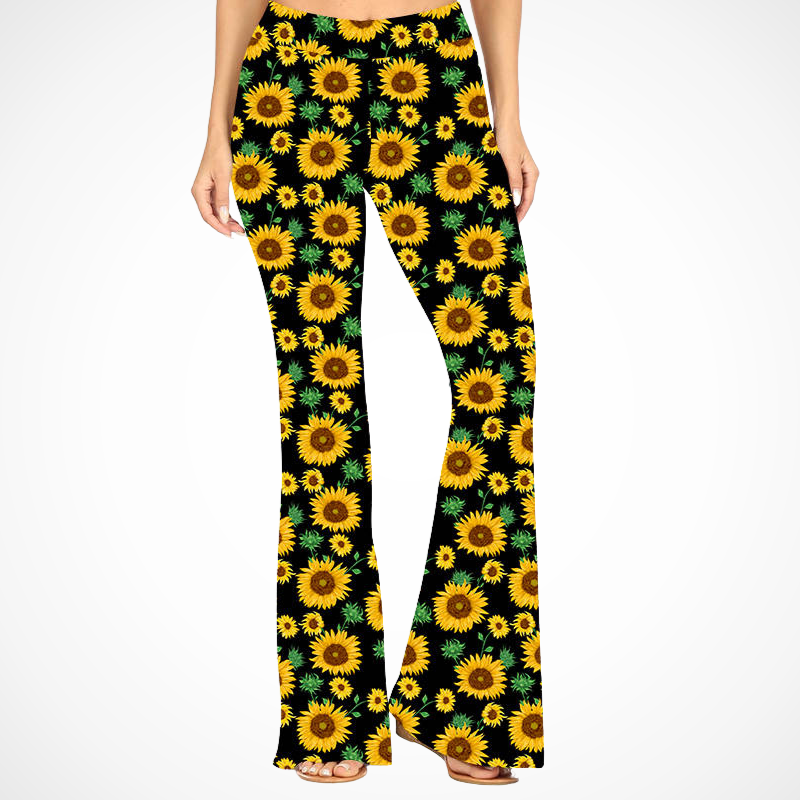 Embrace the cheerful energy of sunflowers with these retro-inspired flares. Who needs a bouquet when your outfit can bloom?