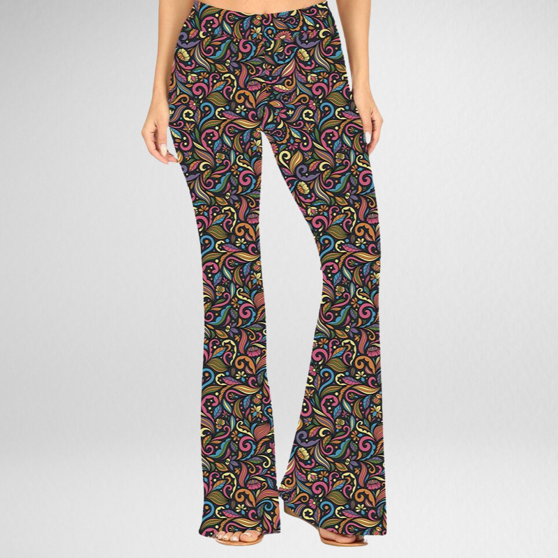 Get groovy with these playful paisley-print bell bottoms, bursting with energy and retro charm. They’re a vibrant choice for festivals, nights out, or simply feeling fabulous.